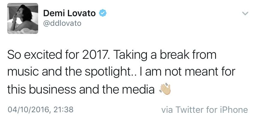Demi Lovato just announced that she is taking a year-off in 2017.