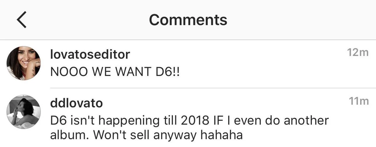 She also confirmed on Instagram that "D6" won't be coming out until 2018... or at all.